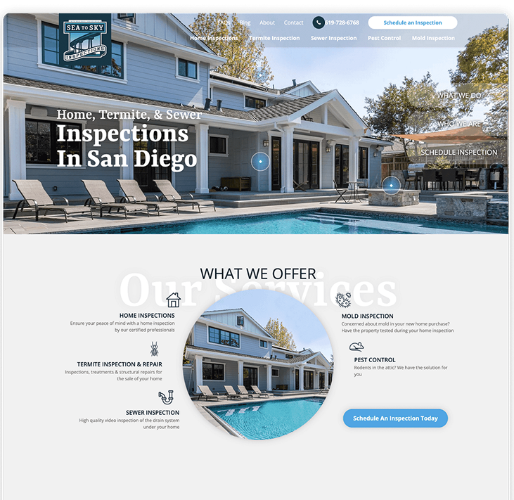 SeaToSkyInspection.com is a full-service inspection company specializing in drone-assisted and traditional roof inspections. Their platform allows homeowners, real estate agents, and property managers to quickly schedule, track, and access detailed inspection reports. The website is designed for clarity, speed, and easy navigation, ensuring users find information and book services effortlessly.